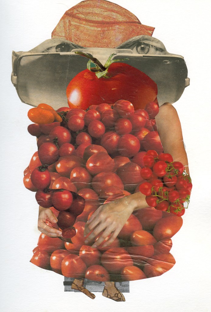 Tomato pips down my face.