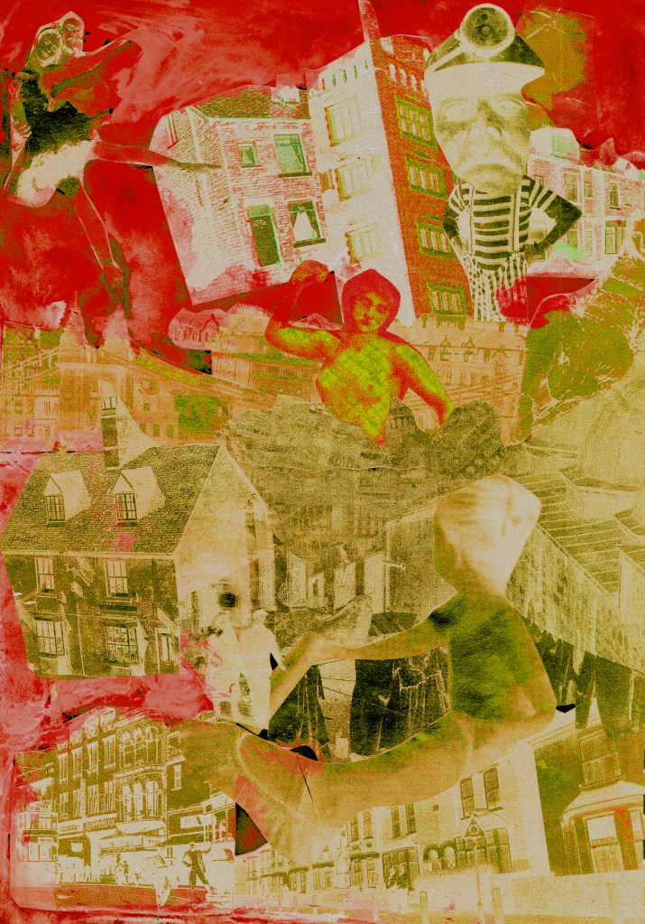 The sawdust footprints match those left in the sand. Under a punch ‘n’ judy policeman’s helmet, each blue eye squints as the sun shines on the open-mouthed corpse with its last laugh canned.